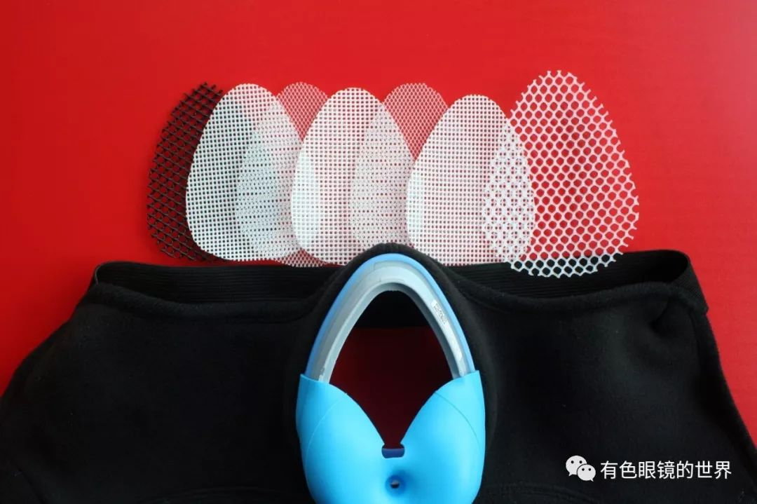眼镜起雾的原因是呼出的热空气在前方有阻碍的情况下会向上流动,最终遇到温度较低的镜片形成水珠,从而影响视线。这款产品使用了橡胶密封圈,有效的组织了空气的传播,从根本上解决了热空气流动凝结的问题,可谓一举多得。
