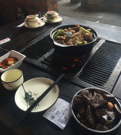这里要说一下,店铺的装修很有特色,服务态度也不错,这是我在云南第一次感受到当地人的朴实与勤劳。 肉质很鲜美,绝对是当地人自己家养的,吃起来很有味道,还有左侧的小料,是需要用排骨汤淋一下在吃的。唯一不足的就是炉子里的烟,各种虚无缥缈的乱转。 最后大众点评优惠买单一共80元。店家地址:http://www.dianping.com/shop/6529001