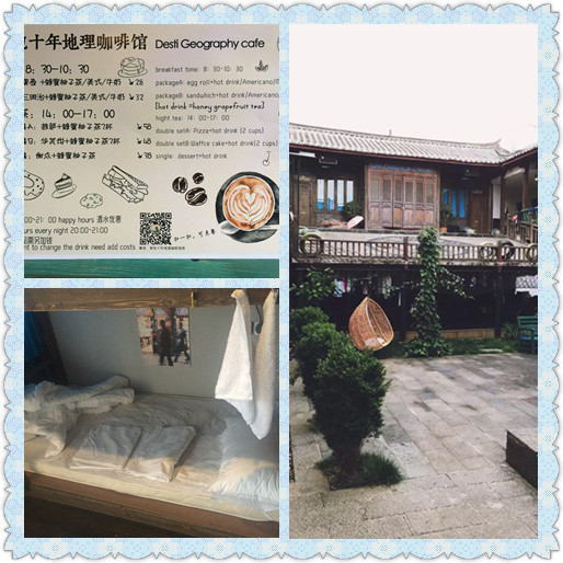吃饱之后,我就往束河古镇的方向坐车,因为时间还很充裕,而且束河相对丽江古城也很近,就选择了公交车,万万没想到的是等公交等了半个小时。。。不过,最后还是很顺利的找到了《十年背包客栈》,一家很有名的青旅,交了45元,选择了一个4人间的屋子,惊喜的是出乎意料的干净,网上对这家旅店的评价也绝对不是虚的,客栈的主人晓鹏还是很用心的,由于来去匆匆,来没来得及跟晓鹏探讨一些关于旅行与生活的话题。(晓鹏将自己的旅行心得记录在了《背包十年》这本书中,友情链接http://item.jd.com/10282846.html)