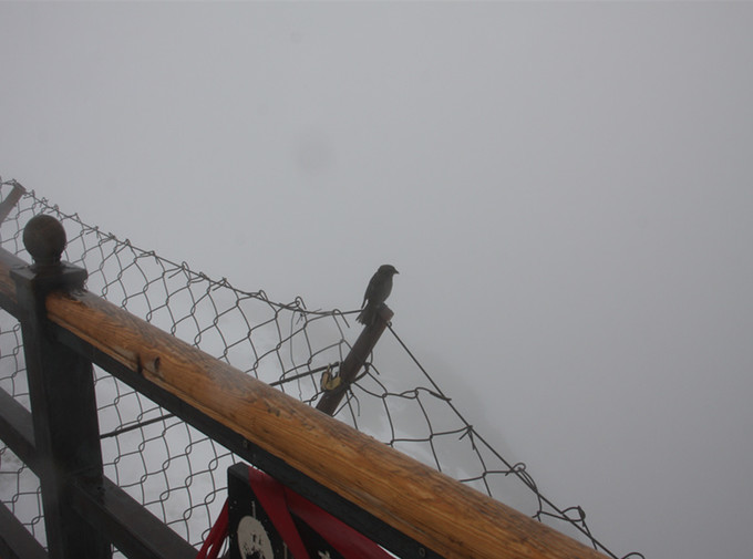这张图是在雪山顶抓拍的,十分令我惊奇的是在海拔4000多米的地方还竟然有鸟的存在。在这张图的下面就是悬崖,由于有了雾气的笼罩似乎看起来也没那么险。