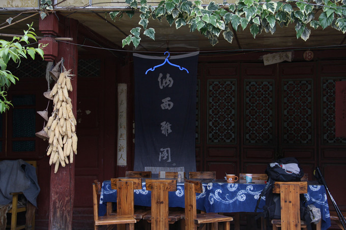 这趟徒步因为想锻炼下体力,所以背了一个大包,主要是为了装相机和日常用品,其实完全可以轻装上阵。 纳西雅阁一角,院子很安静,这里汇聚的国内和国际的游客很多,大家都是徒步高路的,在这里可以找人搭个伴。老板热心的还帮我给手机充了会儿电,请不要问我为什么不带充电宝。