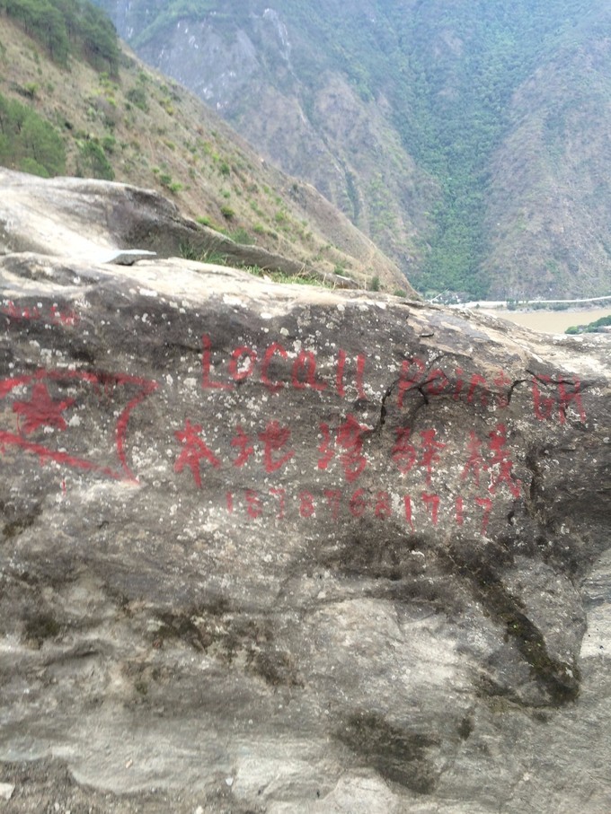 接下来基本就是走山路了,一路上就是走啊走,时不时看见路边茶马、Halfway等旅馆的涂鸦,时不时来点惊喜,但就是不知道还有多远~,这里有个小提示就是Halfway在马蜂窝上留的座机电话信号不好(跟老板确认过),所以路上的手机号码是可以打通的,如果旺季的话,可以提前预定房间+1.