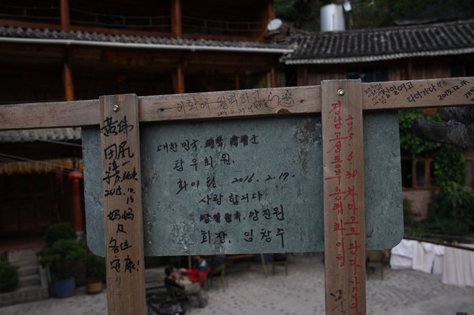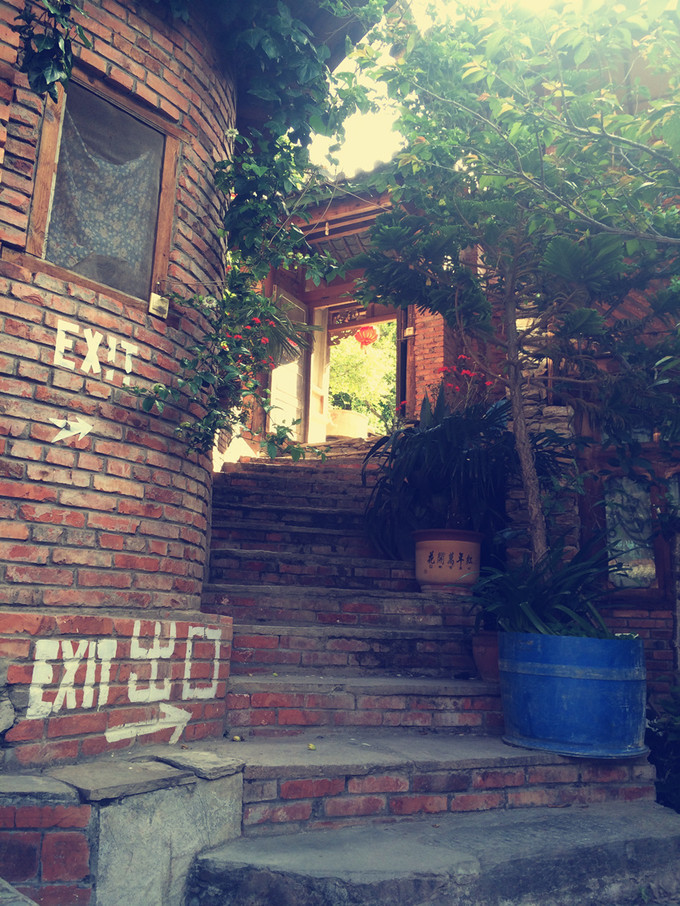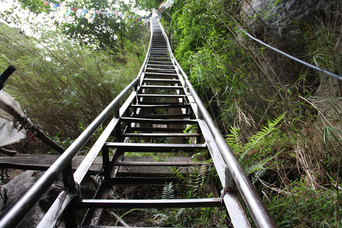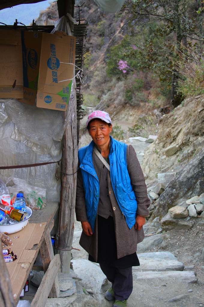 在这里,我和同行的哥们果断的被这里的阿姨“嘲讽”了,因为我们曾经试了2次都下来,走另外一条道,而之前一个胖胖的韩国妹子和一个小朋友果断的爬上去了(汗)。这里的垂直高度在30米左右,这里卖水的阿姨走天梯已经走了15年,听说梯子都换了三回,阿姨还一直说喝一罐红牛就上去了,哈哈。 过了天梯之后,由于我们之前休息和浪费的时间太多,后面的山路基本上都在赶路,就怕在3点半之前赶不回Tina‘s,基本上都是陡峭的山路而且是向上爬,体力也透支严重,不过最终还是赶回了旅馆,坐上了返回丽江的大巴。