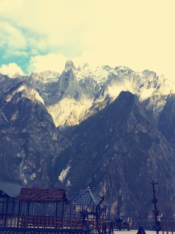 虽然由于天气原因并没有拍到日落金山,但是Halfway的观景台绝对是拍照的最佳位置,站在这里深深的感受到玉龙雪山的震撼,如此亲近,如此朦胧。 晚饭来了一份蛋炒饭+紫菜蛋花汤=27元,第一次徒步这么长时间,基本就是全凭坚持才走下来,现在想想还是值得的。如果人生都是一路平坦,万事都按照计划有条不紊的执行,怎么能有人生挑战呢?!《自控力》一书中曾提到往往在第一次感觉体力透支的情况下,还能继续发挥潜能,只是人类的身体由于适应环境发出的警告而已,并不代表“机械上”的极限,只要坚持,就能突破自身极限,只要坚持,就能达到目标。 D3 徒步虎跳第一日就这样结束了,收获还是蛮多的,遇到了很多人和事,同时也适当的锻炼了体力和意志力,当然能不能减肥就另说了