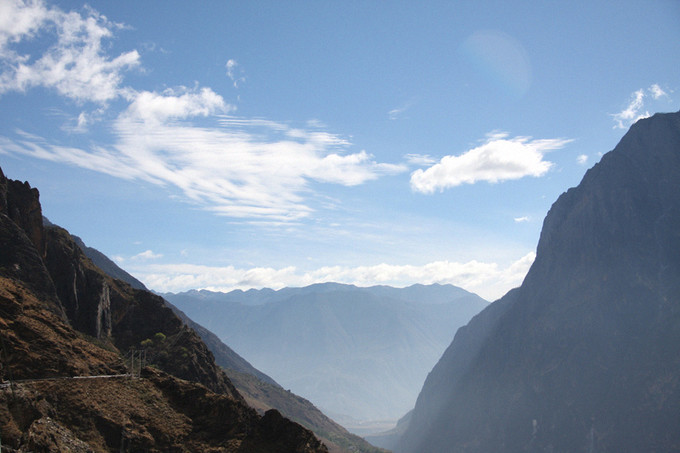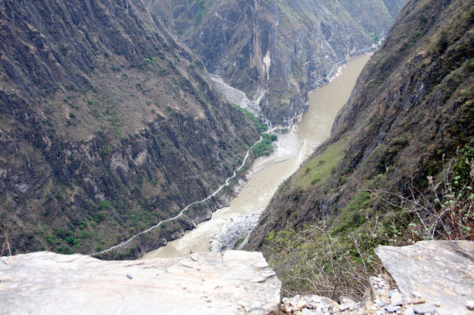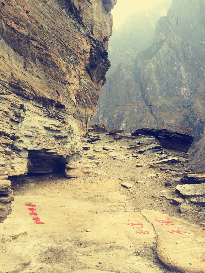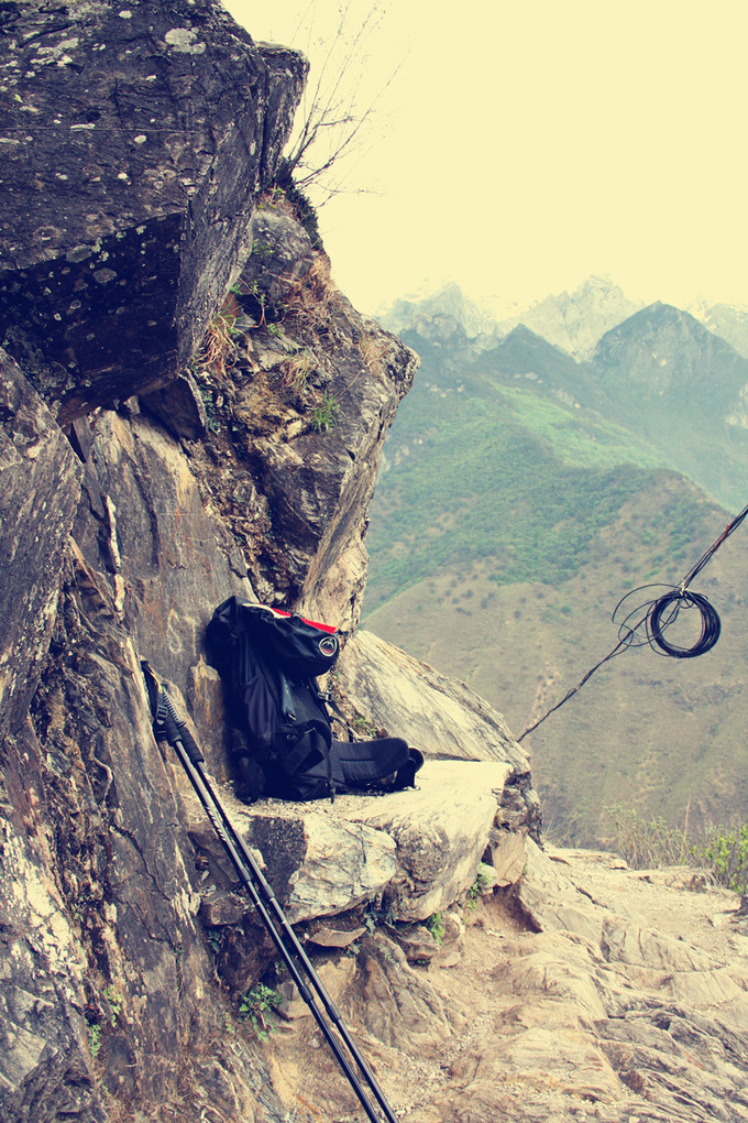 如果说虎跳峡有挑战的话,第一天基本上就是上山下山,靠的是意志力,而第二天的行程才可以用险来形容。
