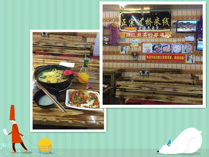 缘分总是在不经意间出现,在返回丽江的路上得知哥们Z和美女W原计划由于山体滑坡不得不取消,使得他俩又得回到丽江然后第二天前往大理,这样正好又能同行,感觉又能一同组队心理十分高兴。不过由于他们很晚才能回来,所以我独自一人游荡在酒吧一条街,然后找了家地地道道的云南米线,哈哈。 D4就这样过去了,可能是审美疲劳拍的照片也少了,唯独遗憾的是,没有拍下束河古镇的夜晚。