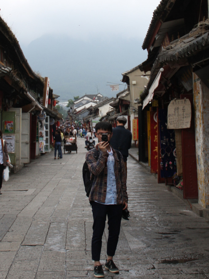 选择青旅最大的好处就是能遇到很多志同道合的小伙伴,随时可以组队。第二个好处,我猜测就是好“勾搭”妹子,请绞尽脑汁的自行搜索。 下午休息的时候,正好闲聊,被哥们Z以保护妹子们为借口组入队中,从此开启了组队之旅。我们开着哥们Z从昆明租来的车,一路前往丽江古城(10分钟车程),恰巧还碰到了网红“丽江小倩”,还有那首走到哪跟到哪的歌曲《一瞬间》(无奈)