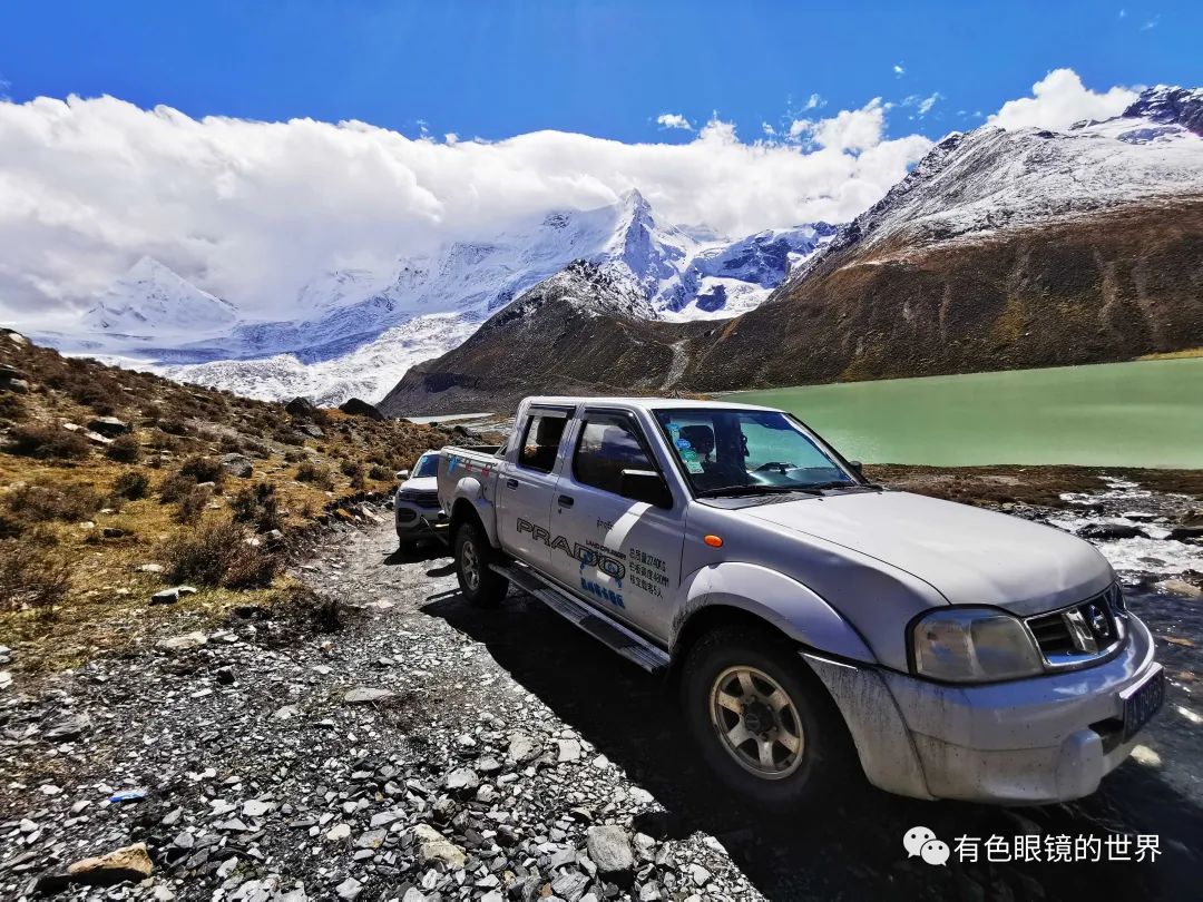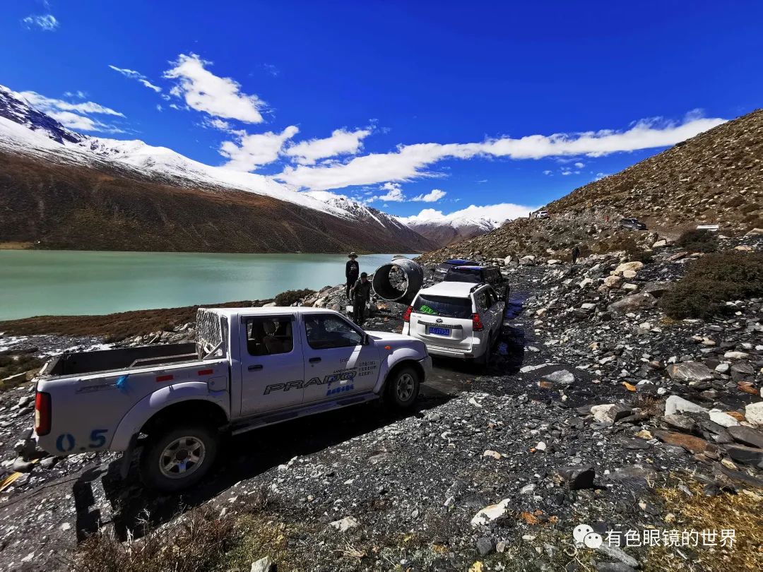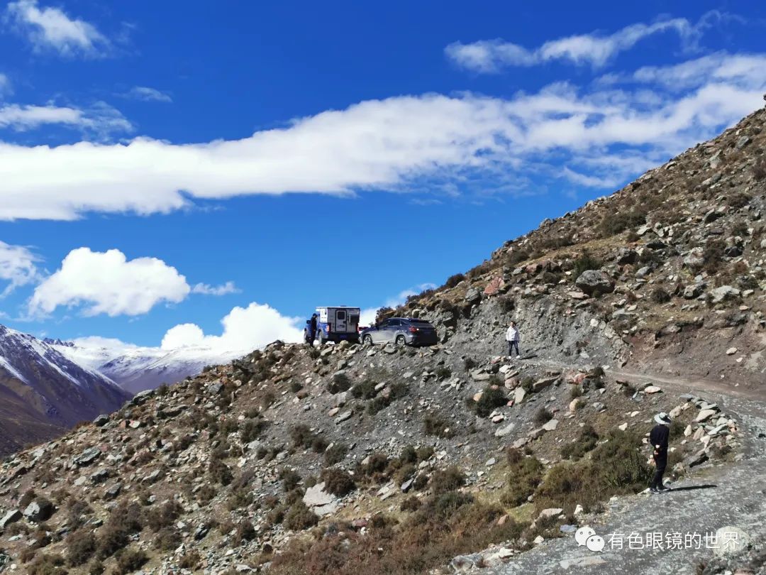 话说两头,linde在给客栈老板打电话联系拖车,好话和苦话说尽,也没有一个特别肯定的答复。无奈之下,与其坐以待毙不如去找老板面对面沟通,如果电话中存在语言障碍,那么至少肢体语言的表达是人类最通用的语言是行的通的。抱着不坐以待毙的想法,下山缠着藏族老板半天,至少答应把我们其他人和物资运出去,来减少我们那大众车的重量(老板自家的是路虎发现3),同时藏族老板帮忙联系拖车,当然这些都是需要承担额外费用的,这也给后来的沟通和商股逐利的本质有了一些不同理解。就在焦急以及绝望的情绪中,出山的车开始在危险的悬崖边缘缓慢的倒车给进山的车让路,心情豁然开朗的同时也为这些司机担心,此时天空也已经放晴,萨普群山也是在云层中时隐时现。经过了各种冲坡,垫石子,换路线之后,终于联系上了拖车,答应有偿托拽,此时藏族老板的车也已拉上了我们的行李和物资往外开,可就在这时先前出发的车辆又和进山的车辆斗上了牛,这种缺乏视角和指挥的状况是必然发生的。